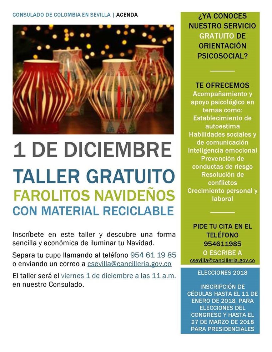 1 de diciembre: Taller gratuito "farolitos navideños con material reciclable" para #ColombianosEnSevilla http://sevilla.consulado.gov.co/newsroom/news/2017-11-08/15181 …pic.twitter.com/TqcjGtI0Hk