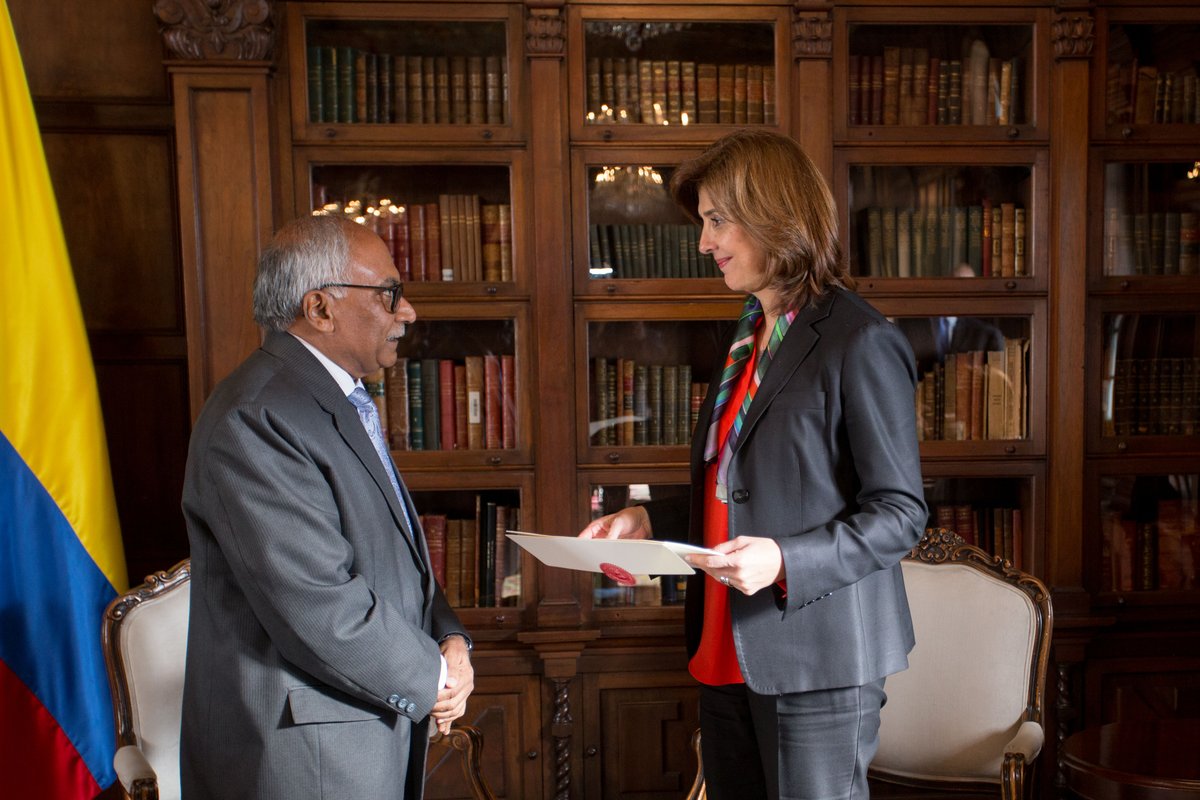 La Canciller María Ángela Holguín recibió las copias de las cartas credenciales del Embajador de la República de la India en Colombia, Ravi Bangar http://www.cancilleria.gov.co/newsroom/news/canciller-maria-angela-holguin-recibio-copias-cartas-credenciales-embajador-republica …pic.twitter.com/HpJqwmFB9D