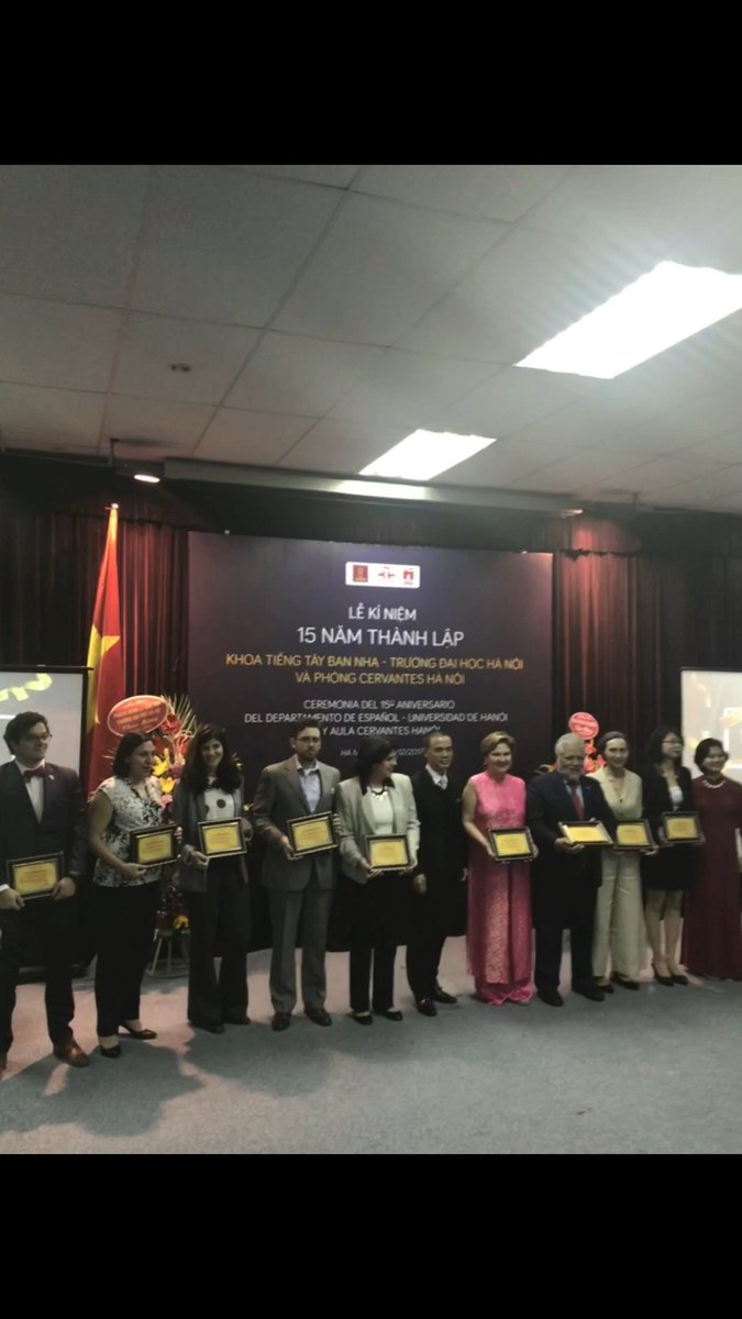 La jefe de misión de #CO en #VIETNAM recibe reconocimiento por parte de Facultad de Español -Universidad de Hanoi por sus aportes a la difusión del español, durante celebración 15 Aniversario de la Facultad.pic.twitter.com/pFbcQVEQ71