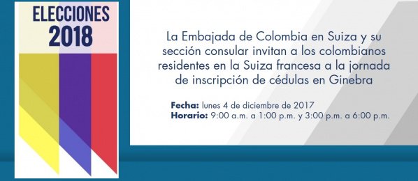 La Embajada en Suiza y su sección consular invitan a la jornada de inscripción de cédulas en Ginebra el 4 de diciembre de 2017 http://berna.consulado.gov.co/node/news/15332/la-embajada-suiza-y-su-seccion-consular-invitan-la-jornada-inscripcion-cedulas …pic.twitter.com/GMqwVBiqIh