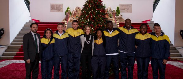 Viceministra Londoño recibió a los ocho jóvenes que viajarán a Mónaco por cuenta de la nominación de la Cancillería al premio 'Peace and Sport' http://www.cancilleria.gov.co/newsroom/news/viceministra-londono-recibio-ocho-jovenes-viajaran-monaco-cuenta-nominacion …pic.twitter.com/JLedURfXmT