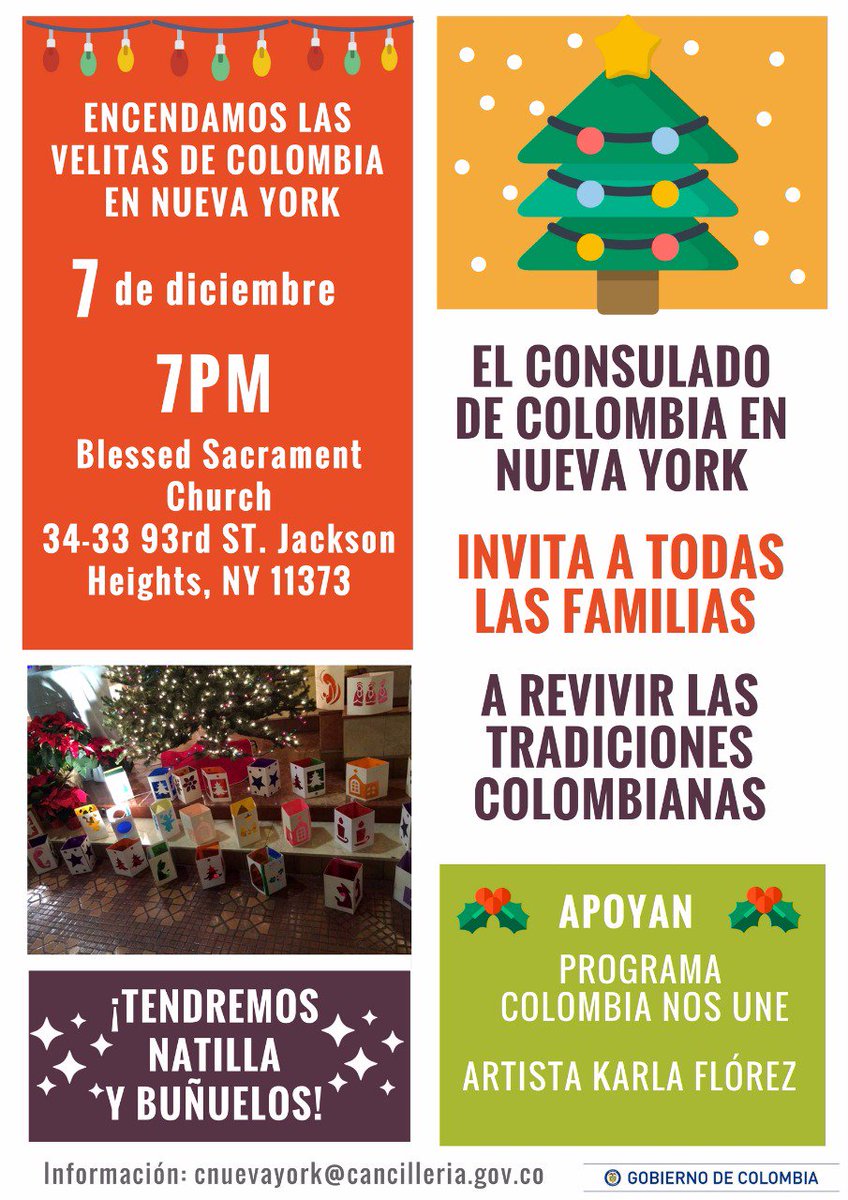 Todo listo para encender las velitas en Nueva York. Consulado de la mano de la familias colombianas se reúnen en Jackson Heights, Queens, para celebrar esta fecha.pic.twitter.com/MG4qzOoX4k
