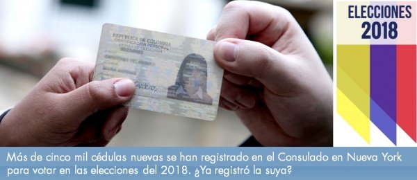 Más de cinco mil cédulas nuevas se han registrado en el Consulado en Nueva York para votar en las elecciones del 2018. ¿Ya registró la suya? http://nuevayork.consulado.gov.co/newsroom/news/2017-12-19/15550 …pic.twitter.com/cScqLza7zy
