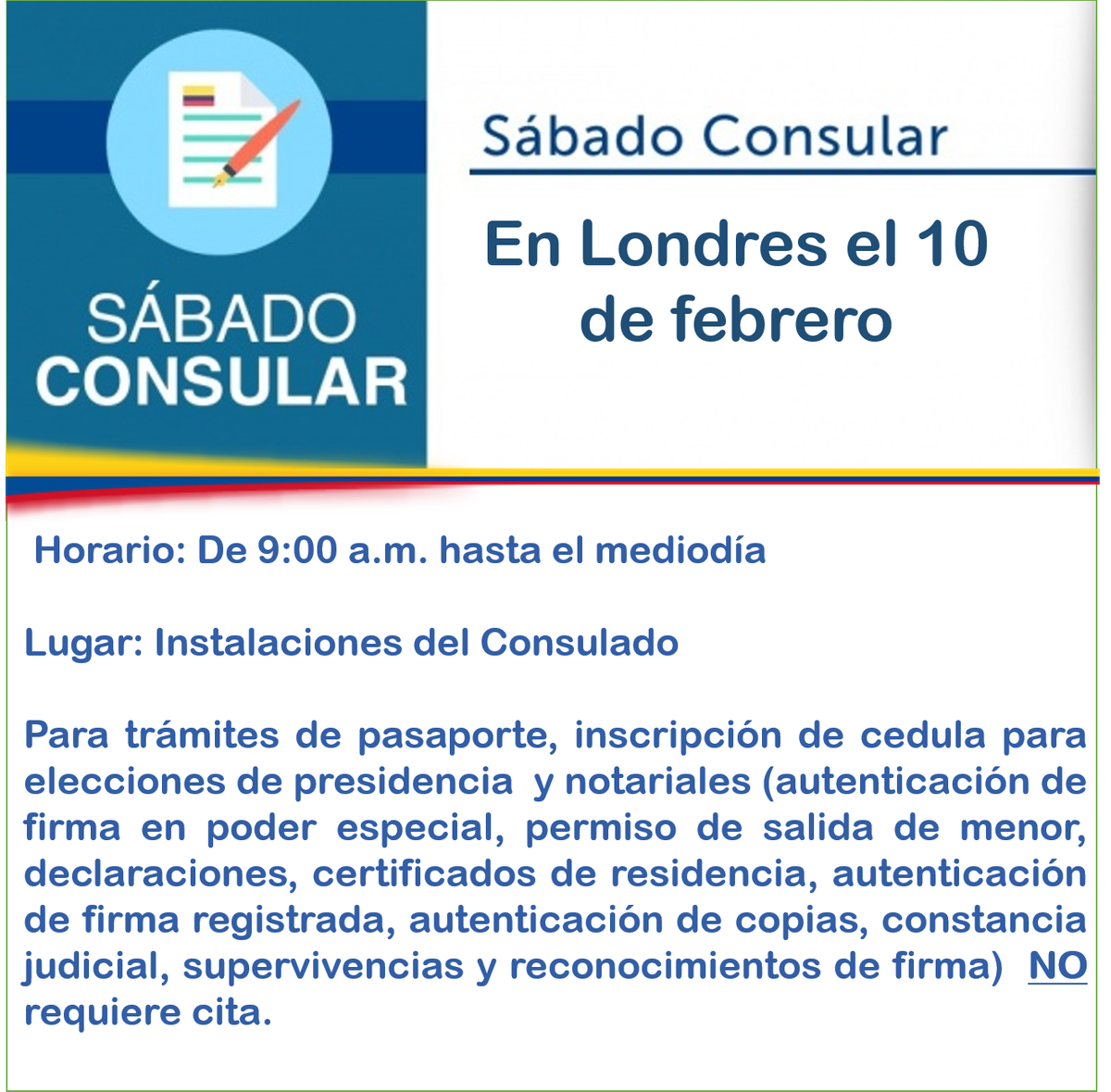 Sábado consular para los #ColombianosEnLondres este 10 de febrero:pic.twitter.com/PW2xJOeS5a