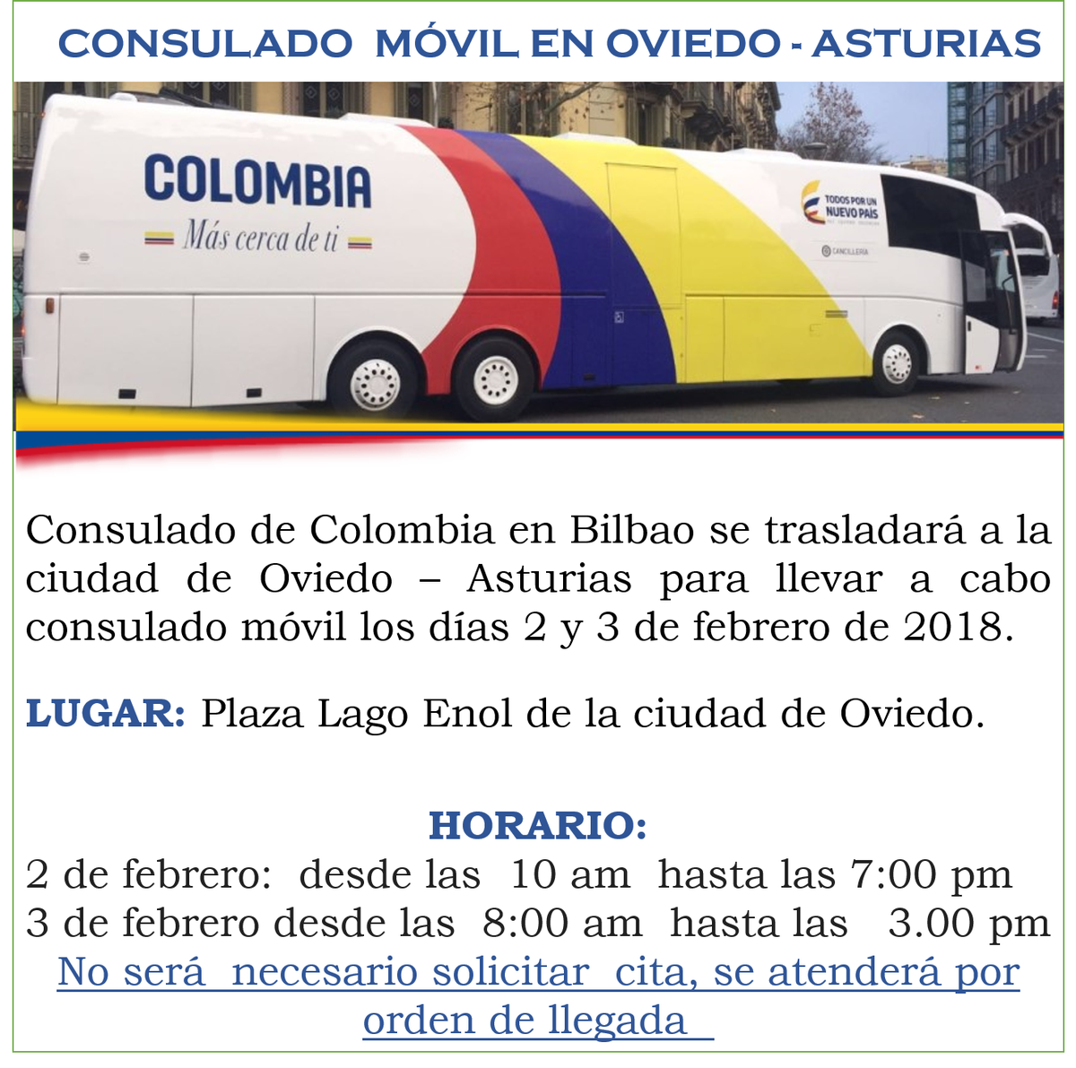#ConsuladoEnBilbao se trasladará a Oviedo – Asturias para realizar Consulado Móvil el 2 y 3 de febreropic.twitter.com/tJeKZxaaJz