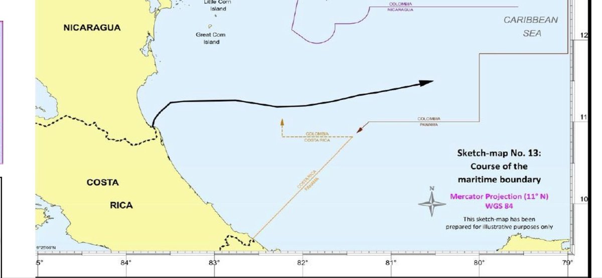 Se trata de fallo proferido por CIJ en caso Costa Rica - Nicaragua, Delimitación Marítima en el Mar Caribe y en el Océano Pacífico. Este fallo sólo es obligatorio para partes involucradas en la controversia. Según Estatuto de la Corte, no es vinculante para terceros países.