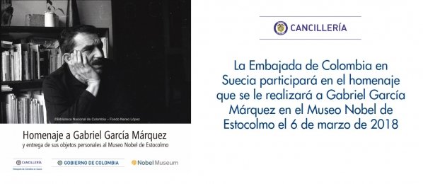 La Embajada de Colombia en Suecia participará en el homenaje que se le realizará a Gabriel García Márquez en el Museo Nobel de Estocolmo. http://suecia.embajada.gov.co/node/news/13871/la-embajada-colombia-suecia-participara-homenaje-que-se-le-realizara-gabriel-garcia …pic.twitter.com/TO5YJKGUoi