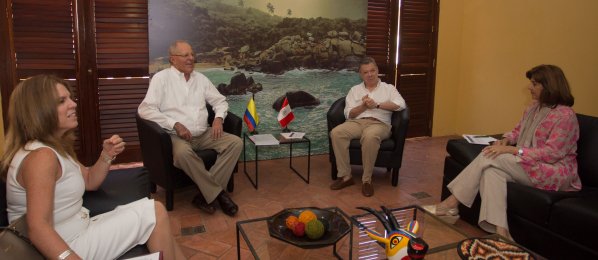 A esta hora, Canciller Holguín participa en reunión privada de Presidente @JuanManSantos y @ppkamigo en IV #GabineteColombiaPerúpic.twitter.com/F9zWajnDLv