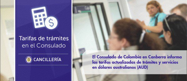 #ColombianosEnCanberra #ColombianosEnAutralia El Consulado de Colombia en Canberra informa las tarifas actualizadas de trámites y servicios en dólares australianos (AUD). http://canberra.consulado.gov.co/node/news/13649/consulado-colombia-canberra-informa-las-tarifas-actualizadas-tramites-y-servicios …pic.twitter.com/ZJSlJ80WbE