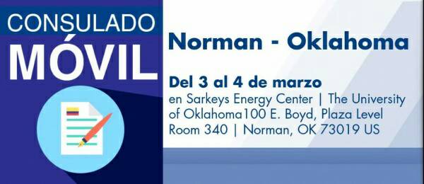 El Consulado de Colombia en Houston realizará el Consulado Móvil en Norman - Oklahoma del 3 al 4 de marzo de 2018. http://houston.consulado.gov.co/newsroom/news/2018-02-24/15940 …pic.twitter.com/1GBKRosdoN