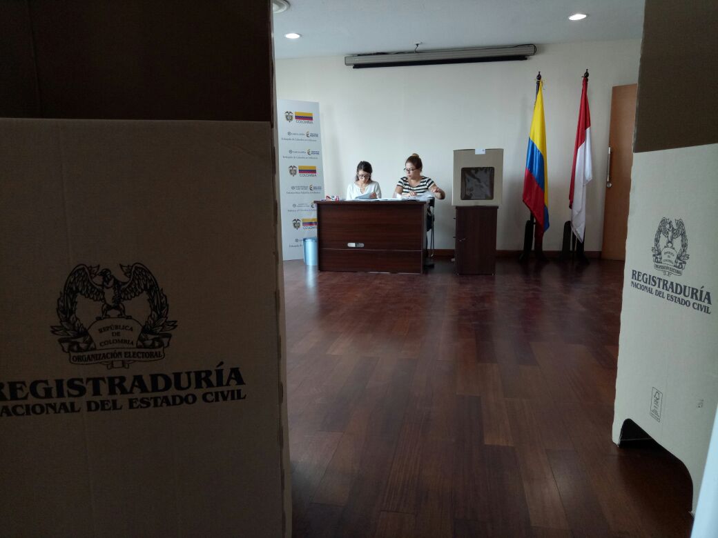 #ColombianosEnYakarta A las 8:00 am del 5 de marzo (hora local) el Consulado de Colombia abrió mesa de votación para que los colombianos voten para elegir el nuevo Congreso de la República. Jornada electoral en el exterior irá del 5 al 11 de marzo. #EleccionesColombiapic.twitter.com/kCdralXr6g