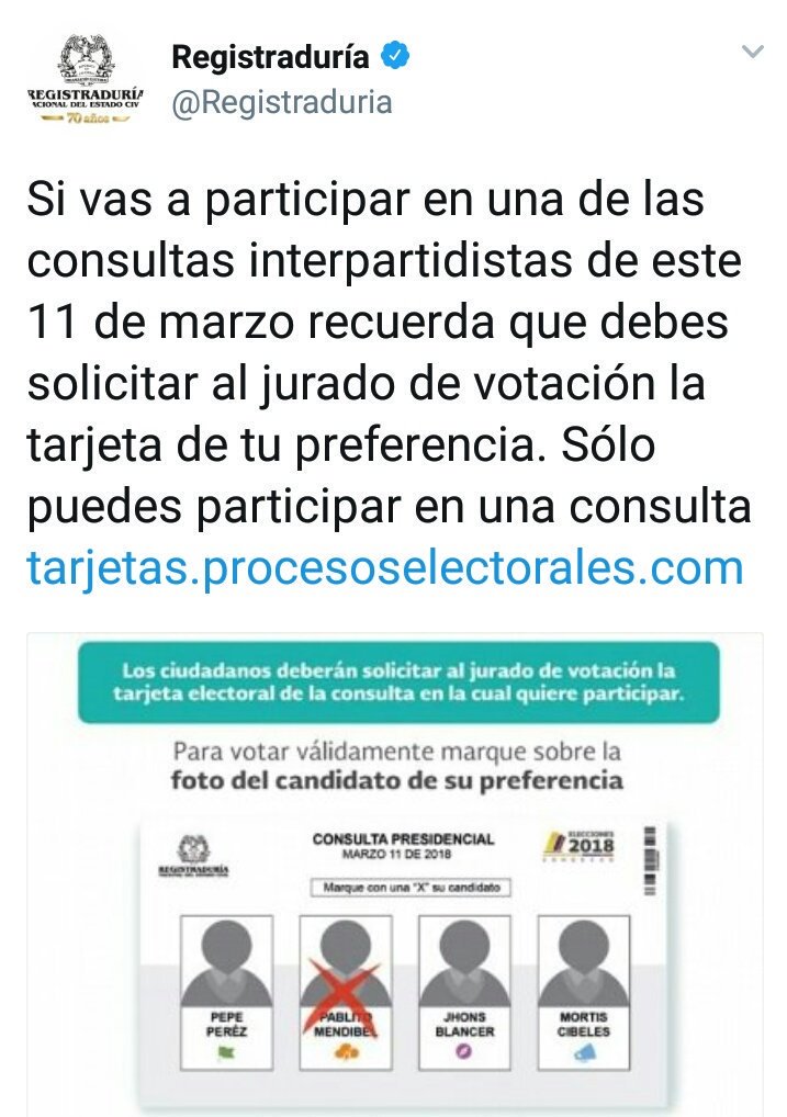 @Registraduria indica que el sufragante es la persona que debe pedir la tarjeta. Cordial Saludopic.twitter.com/7fbFmdraQj