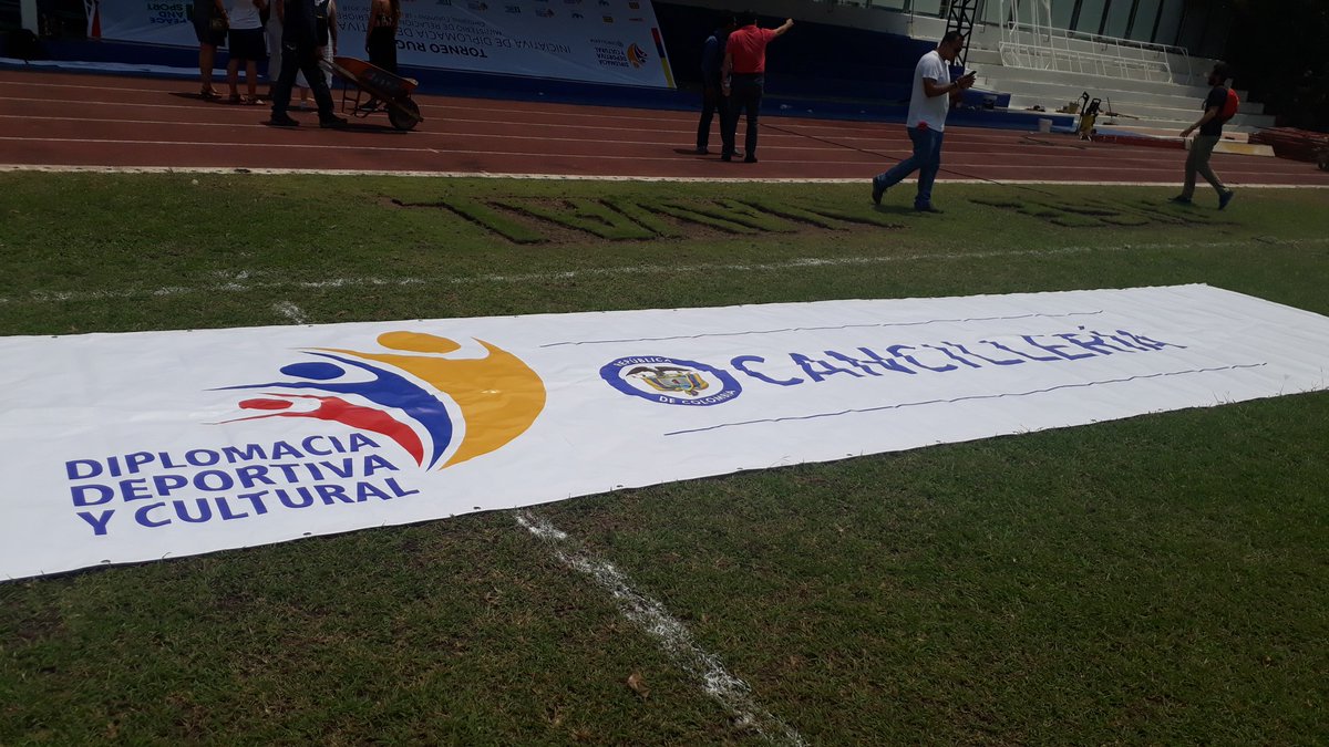 Avanza en la Base Naval de Cartagena el montaje para torneo de Diplomacia Deportiva Rugby Sevens en el que participarán como invitados especiales el Príncipe de Mónaco y Didier Drogbapic.twitter.com/IU2umoBL73