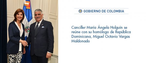 Canciller María Ángela Holguín se reúne con su homólogo de República Dominicana, Miguel Octavio Vargas Maldonado. http://www.cancilleria.gov.co/newsroom/news/canciller-maria-angela-holguin-reune-su-homologo-republica-dominicana-miguel-octavio …pic.twitter.com/IGon9HKHwa