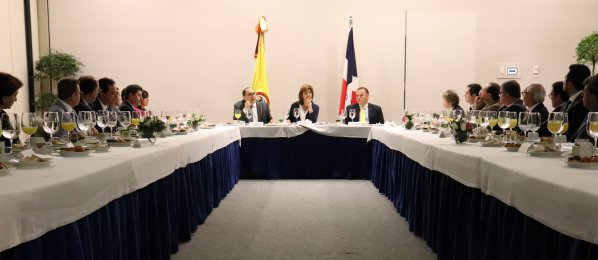 En desayuno con el Círculo Empresarial Colombia - República Dominicana, Canciller Holguín destacó los profundos cambios que ha tenido nuestro país, gracias al proceso de paz, en materia de seguridad, conectividad y superación de la pobreza. http://www.cancilleria.gov.co/newsroom/news/canciller-maria-angela-holguin-reunio-circulo-empresarial-colombia-republica … #GiraCaribepic.twitter.com/URyZQ2s9pg