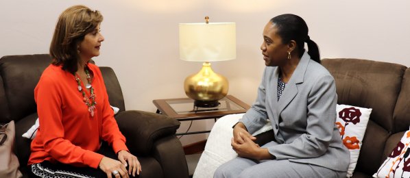 Las Ministras de Relaciones Exteriores de Colombia, María Ángela Holguín, y de Dominica, Francine Baron, sostuvieron reunión bilateral. #GiraCaribe http://www.cancilleria.gov.co/newsroom/news/ministras-relaciones-exteriores-colombia-maria-angela-holguin-dominica-francine-0 …pic.twitter.com/JSHGJdLAiR