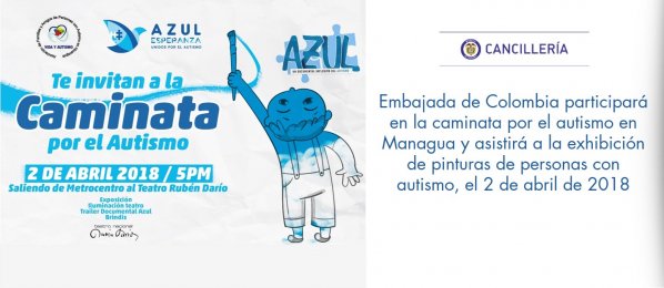 Embajada de Colombia participará en la caminata por el autismo en Managua y asistirá a la exhibición de pinturas de personas con autismo, el 2 de abril de 2018. http://nicaragua.embajada.gov.co/node/news/14180/embajada-colombia-participara-la-caminata-autismo-managua-y-asistira-la-exhibicion …pic.twitter.com/xiVrFIe1HV