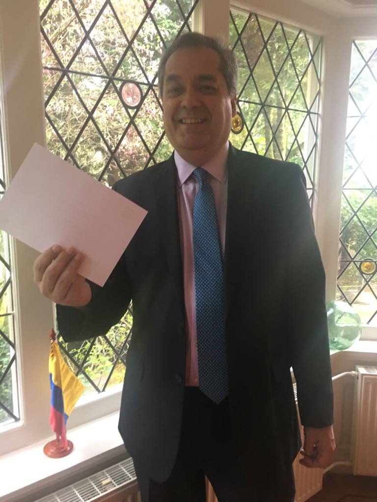 El Embajador de Colombia ante Países Bajos, Juan José Quintana, se une a la conmemoración del Día Internacional del Deporte para el Desarrollo y la Paz #IDSDP2018 #TarjetaBlanca #WhiteCard #DiplomaciaDeportivapic.twitter.com/exgdqFUOdD