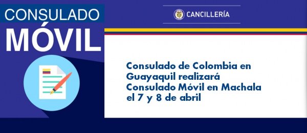 #Atención #ColombianosEnMachala Consulado de Colombia en Guayaquil realizará Consulado Móvil en Machala el 7 y 8 de abril. http://guayaquil.consulado.gov.co/newsroom/news/2018-03-23/16341 …pic.twitter.com/bPI0CGqK0O