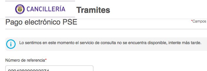 @CancilleriaCol señores el sistema pse para pagos d visas no ha funcionado todo el fin de semana. Llamo a su central telefonica y tampoco contestan se escucha un sonido vacio. Por favor revisen urgente. Gracias