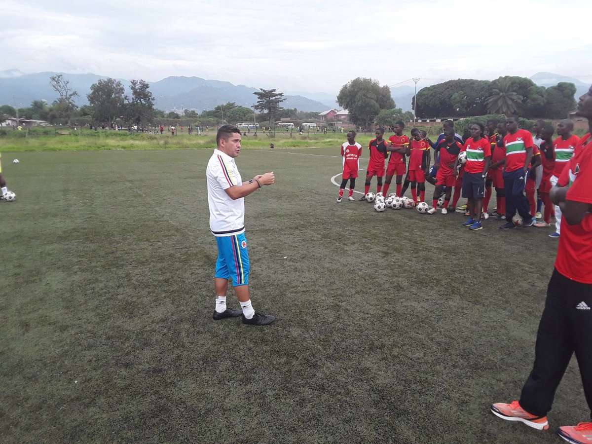 Con la Embajada de #Colombia en #Kenia, los entrenadores colombianos Christopher Moreno y Eduard Tamayo continúan el taller de fortalecimiento de capacidades, hoy con sesión trabajo técnico con los entrenadores de la Federación de Fútbol de #Burundi.pic.twitter.com/E2Mm7QiG9k