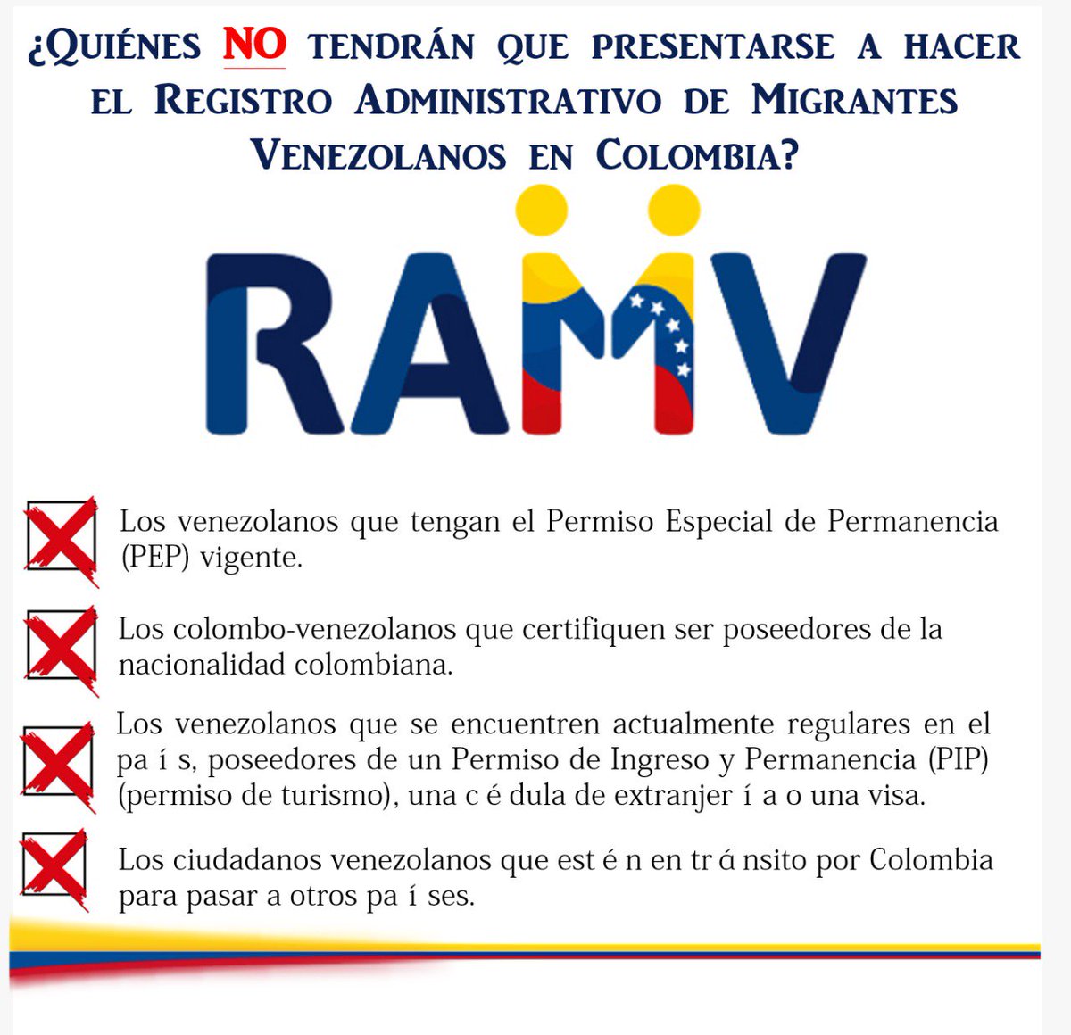 #VenezolanosEnColombia ¿Quiénes NO tendrán que presentarse a hacer el #RAMV?pic.twitter.com/oMUVG7Z6C2