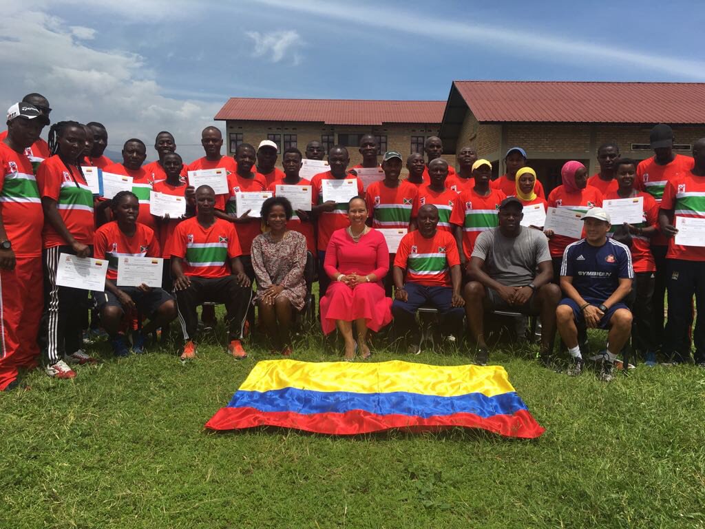 Culminó con éxito el taller de fortalecimiento de capacidades con la Federación de Fútbol de Burundi realizado por la Embajada de #Colombia en #Kenia con los entrenadores colombianos Christopher Moreno y Eduard Tamayo.pic.twitter.com/YLvXG5M5Pm