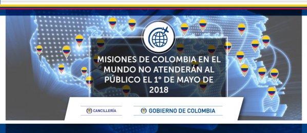 #Atención | Misiones de Colombia en el mundo no atenderán al público el 1° de mayo de 2018. http://www.cancilleria.gov.co/newsroom/news/misiones-colombia-mundo-no-atenderan-publico-1deg-mayo-2018 …pic.twitter.com/UWRHCYv9b6