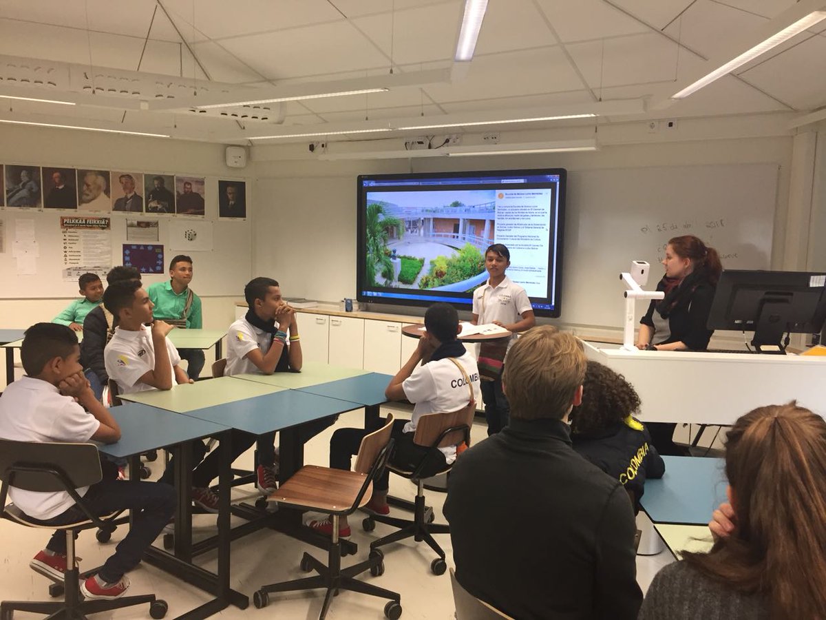 Jóvenes de la escuela Lucho Bermúdez comparten expresiones propias de la Costa Caribe con estudiantes de español en #Finlandia en el marco del programa de #DiplomaciaCultural de @CancilleriaCol.pic.twitter.com/T57pQIcDCJ