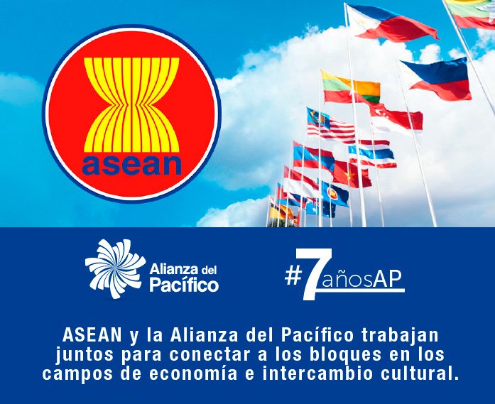La #AlianzaDelPacífico da pasos firmes en el propósito de fortalecer el acercamiento al Asia Pacífico, mediante la suscripción del Marco de Cooperación con la Asociación de Naciones del Sudeste Asiático en el 2016. #7AñosAP #ElPoderDeLaIntegración.pic.twitter.com/uhdKAJzgKX