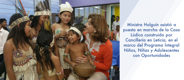 Ministra Holguín asistió a puesta en marcha de la Casa Lúdica construida por Cancillería en Leticia, en el marco del Programa Integral Niños, Niñas y Adolescentes con Oportunidades. http://www.cancilleria.gov.co/newsroom/news/ministra-holguin-asistio-puesta-marcha-casa-ludica-construida-cancilleria-leticia …pic.twitter.com/gBqDtjZk7Y