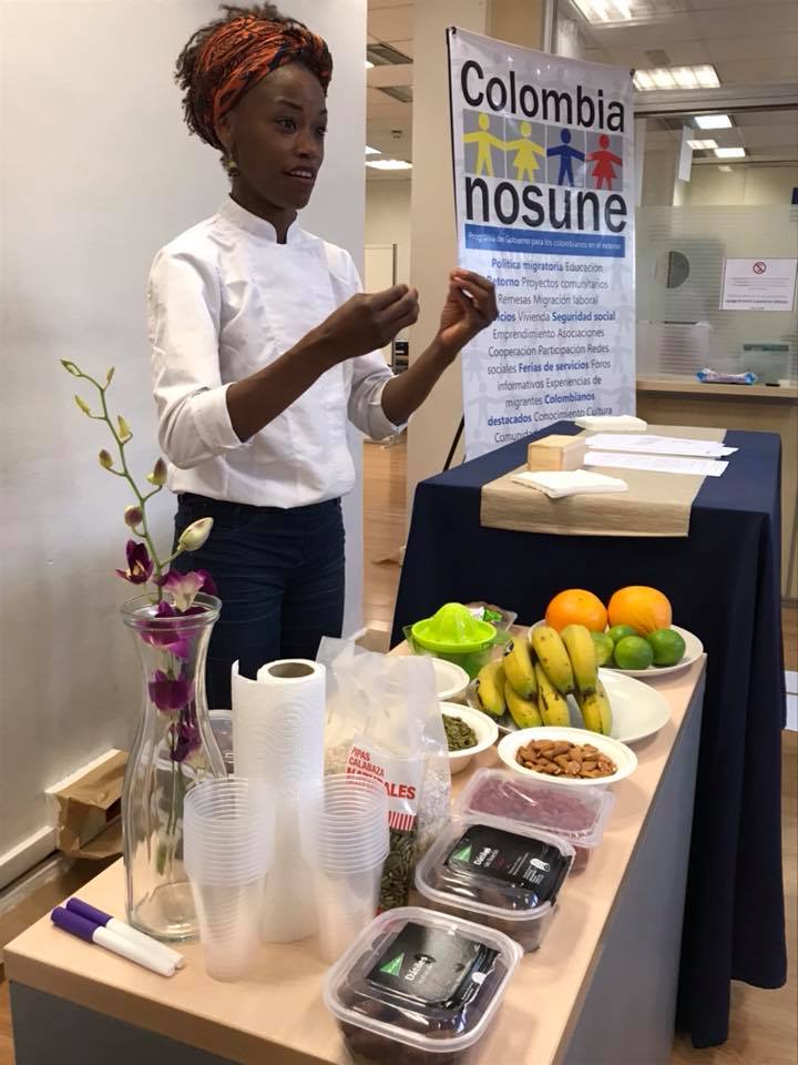 Chef Lorena Delgado, del proyecto D'instinto Cocina Multicultural, compartió su experiencia, recetas y tips de alimentación sana entre la comunidad colombiana de Barcelona, que participó en la charla de cocina saludable organizada por el Consulado y Colombia Nos Une.pic.twitter.com/oi05c81Kms
