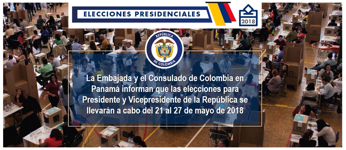 La Embajada de Colombia en Panamá informa que las elecciones para Presidente y Vicepresidente de la República se llevarán a cabo del 21 al 27 de mayo de 2018 http://panama.embajada.gov.co/node/news/14581/la-embajada-colombia-panama-informa-que-las-elecciones-presidente-y-vicepresidente …pic.twitter.com/FqBrMi1QbO