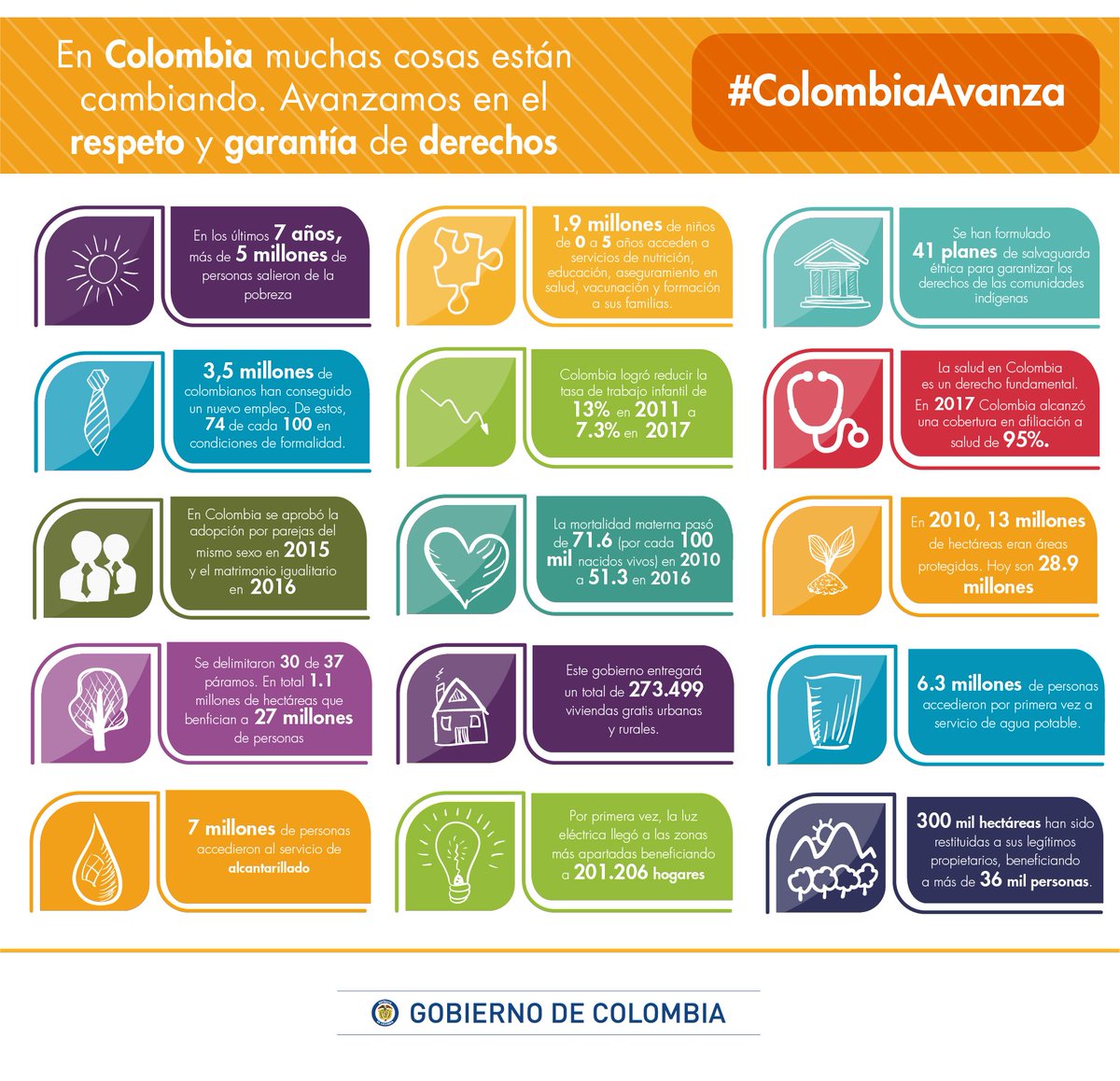 En Colombia muchas cosas están cambiando. Aunque sean muchos los desafíos, seguimos avanzando en el respeto y garantía de derechos humanos. #ColombiaAvanzapic.twitter.com/n4sIpnUJnS