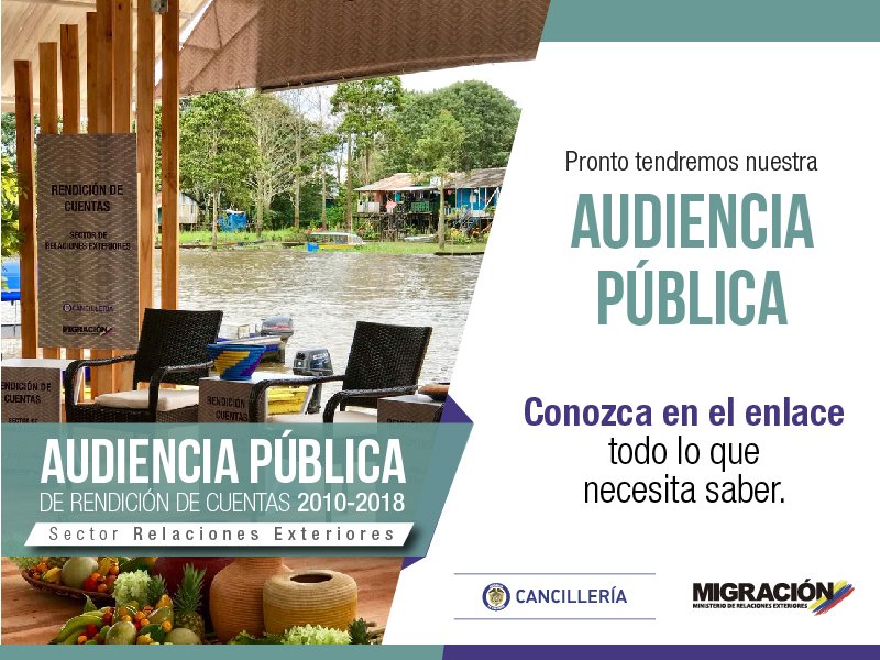 Prepárese para nuestra Audiencia Pública de Rendición de Cuentas. Más información: http://www.cancilleria.gov.co/audiencia-publica-rendicion-cuentas-2010-2018 …pic.twitter.com/kx7PXYlAuM