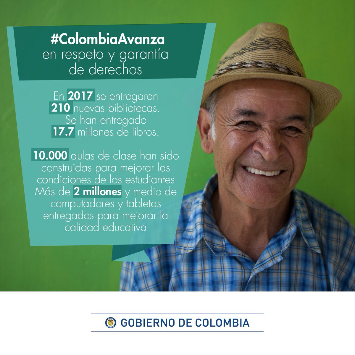 #ColombiaAvanza en más calidad y más acceso a la educación. Con educación impulsamos la equidad y el desarrollo del país.pic.twitter.com/jUDCfdtoIM