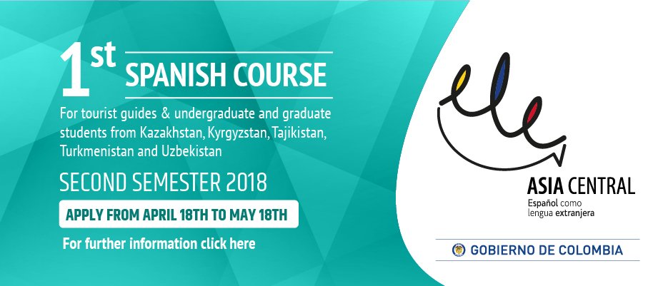 You can still apply! If you have B1 level in English and If you want to learn Spanish in Colombia apply to ELE CENTRALASIA, Deadline: 18th may. #Kazakhstan, #Tajikistan, #Uzbekistan, #Kyrgyzstan and #Turkmenistan #SoyELEColombia. http://rusia.embajada.gov.co/newsroom/news/2018-04-19/14406 …pic.twitter.com/do73a3NdAQ