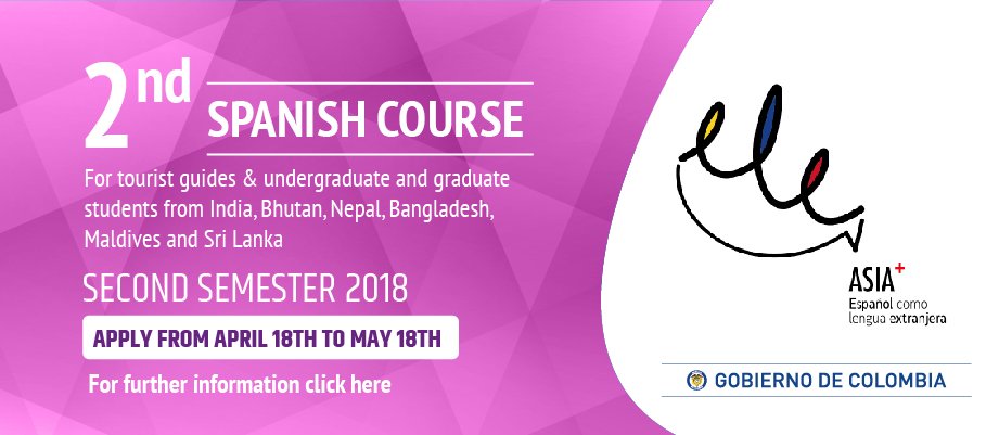 ELE ASIA+: #India #Bhutan #Nepal #Bangladesh #Maldives #SriLanka. Colombia offers Scholarships to learn Spanish #SoyELEColombia. Apply now: http://india.embajada.gov.co/newsroom/news/2018-04-19/14407 …pic.twitter.com/Niid28VIcC