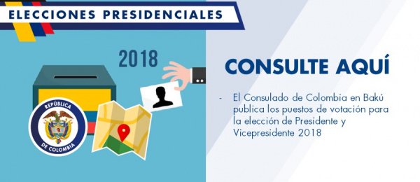 El Consulado de Colombia en Bakú publica los puestos de votación para la elección de Presidente y Vicepresidente 2018. #EleccionesColombia #ColombianosEnBakú http://baku.consulado.gov.co/newsroom/news/2018-05-10/16708 …pic.twitter.com/YoXPp2HMSH