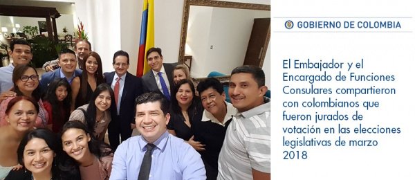 #Embajador y el Encargado de Funciones Consulares compartieron con colombianos que fueron jurados de votación en las elecciones legislativas de marzo 2018. http://sanjosedecostarica.consulado.gov.co/newsroom/news/2018-05-17/16818 …pic.twitter.com/cduso4B0VG