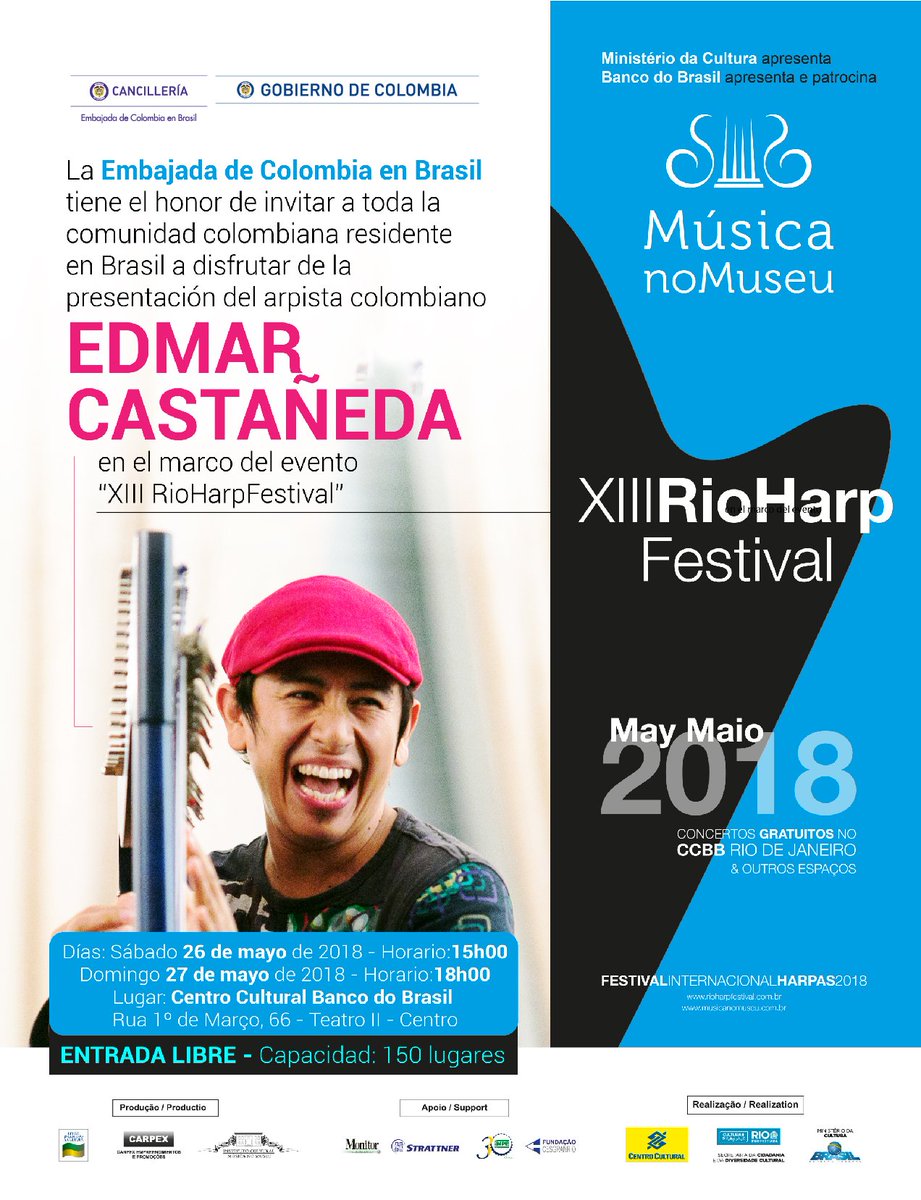 El arpista colombiano @edmarcastañeda participará en el RioHarpFestival2018 @musicanomuseu1 con la Embajada de #Colombia en #Brasil.pic.twitter.com/PHJb3oZAkQ