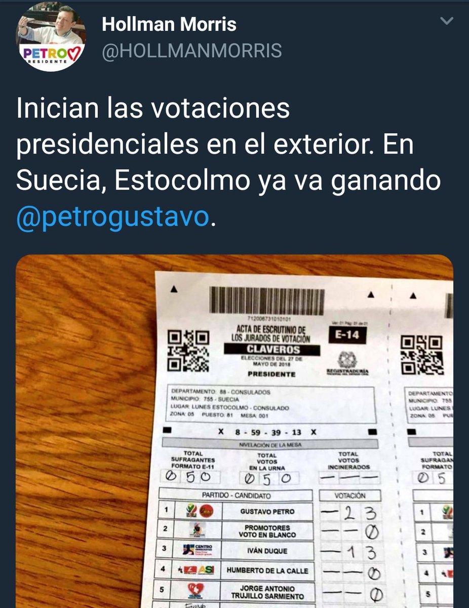 Señores @Registraduria y @CancilleriaCol ¿Es esto legal y válido? ¿No se supone que estos datos solo se pueden revelar a partir de las 16:00hs COT el 27 de mayo de 2018?pic.twitter.com/mZqAn3y73D
