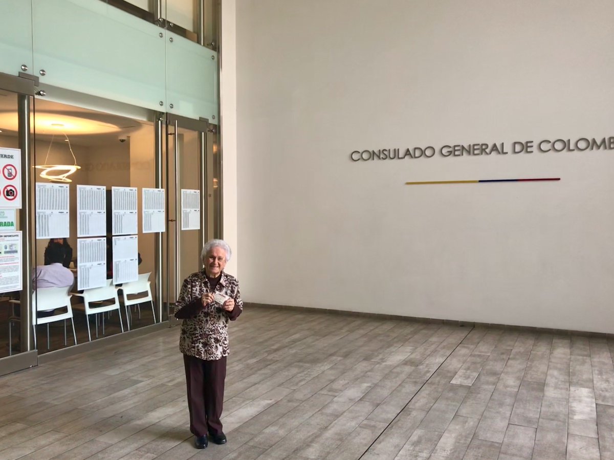 La colombiana ITALIA URIBE DE ALVAREZ, estuvo hoy en el Consulado de Colombia en Lima ejerciendo su derecho al voto. Recuerden que las votaciones van hasta el 27 de mayo y el horario es de 8:00 a.m. a 4:00 p.m. hora local #ColombianosEnElExterior #EleccionesColombiapic.twitter.com/utJXPkdnj1