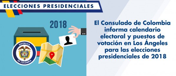 #Consulado de Colombia informa calendario electoral y puestos de votación en Los Ángeles para las elecciones presidenciales de 2018. #EleccionesColombia #ColombianosEnLosAngeles http://losangeles.consulado.gov.co/node/news/16992/consulado-colombia-informa-calendario-electoral-y-puestos-votacion-los-angeles-las …pic.twitter.com/usMOXfGPzo