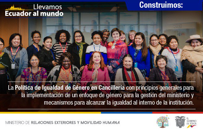 La Política para la Igualdad de Género en Cancillería promueve la equidad en toda la institución. #LlevamosEcuadorAlMundopic.twitter.com/yZaJxuhDNq