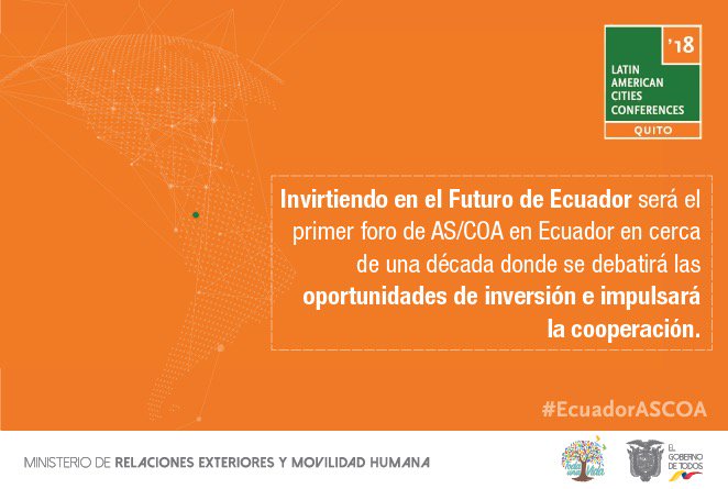 El foro 'Invirtiendo en el Futuro del Ecuador' de @ASCOA debatirá las oportunidades de inversión y la cooperación en las Américas. Hoy a partir de las 11h00.