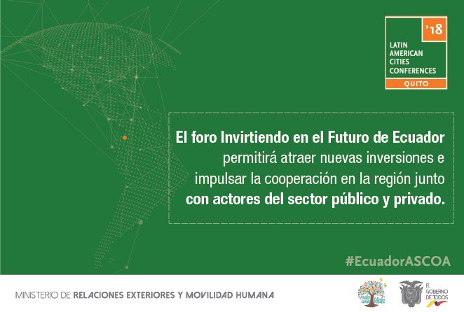 El foro 'Invirtiendo en el Futuro del Ecuador' de @ASCOA permitirá atraer inversiones e impulsar la cooperación entre actores del sector público y privado. Hoy a partir de las 11h00.