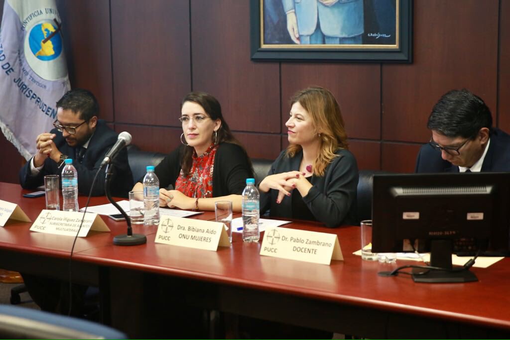 #Ahora | Carola Íñiguez, subsecretaria de Asuntos Multilaterales de @CancilleriaEc asiste al foro: "Ecuador hacia la presidencia de la Asamblea General de Naciones Unidas: Retos y perspectivas" en la facultad de @DerechoPUCE #EcuadorALaONUpic.twitter.com/JhqRZD1Z7X