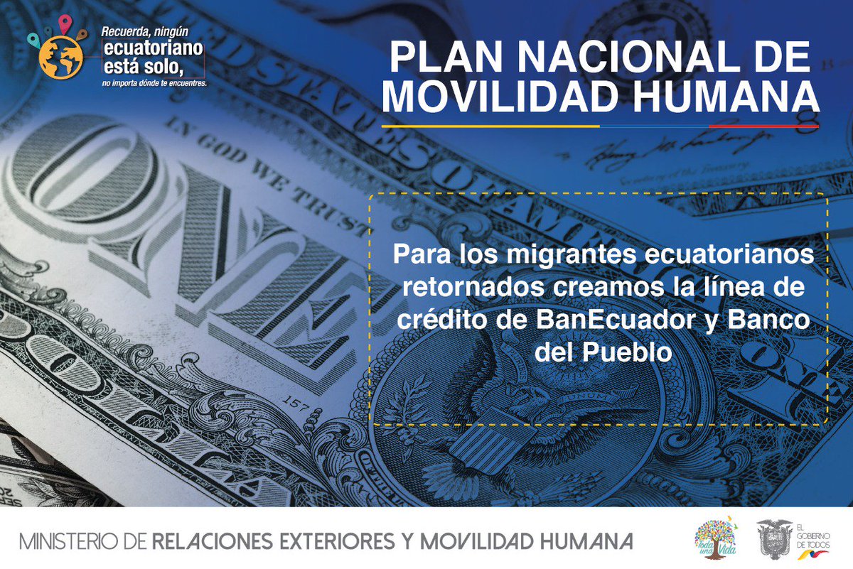 Trabajamos por fomentar la inclusión de los ecuatorianos que han retornado al país. A través de @BanEcuadorBP se creó una línea de crédito para migrantes retornados. #PlanMovilidadHumanapic.twitter.com/fNNNc60kkr