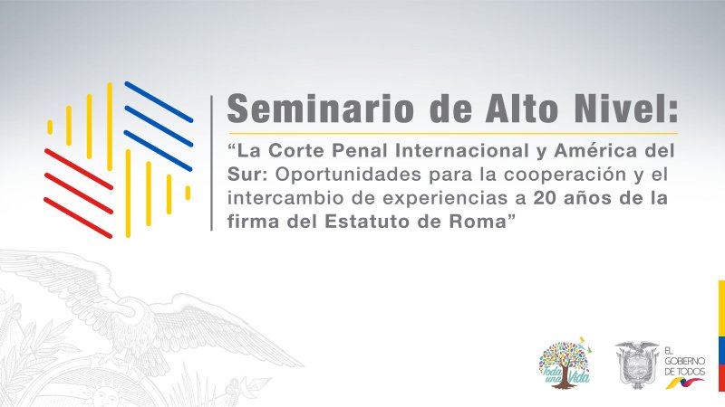#Ahora | en la sede de @unasur se realizará los días 7 y 8 de junio el Seminario de Alto Nivel: 'La Corte Penal Internacional y América del Sur: Oportunidades para la cooperación y el intercambio de experiencias a 20 años de la firma del Estatuto de Roma'.pic.twitter.com/2ml8MQrAFa